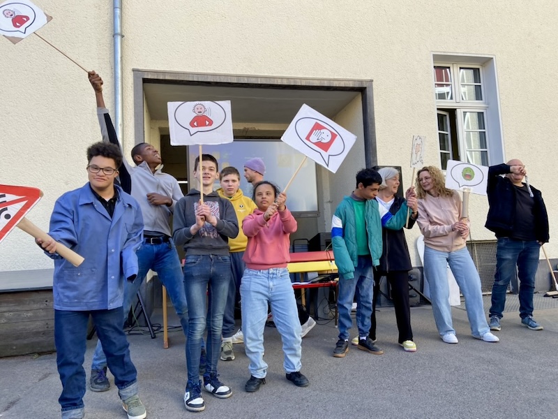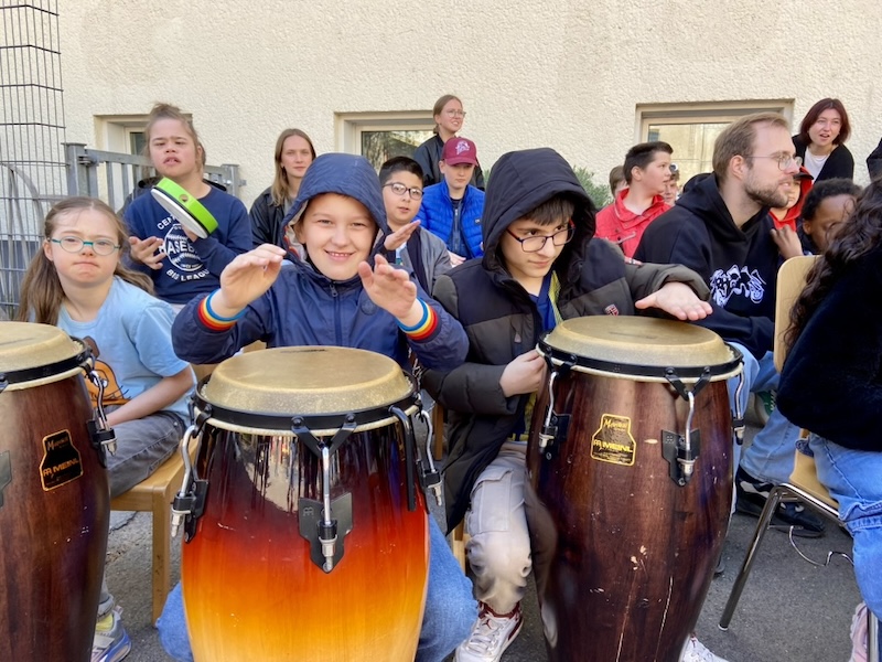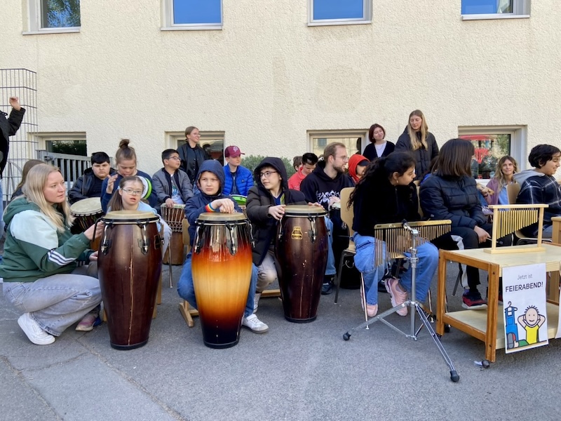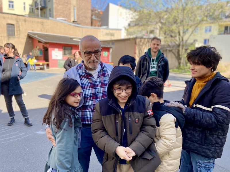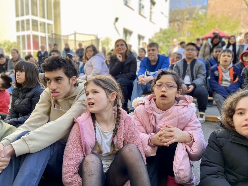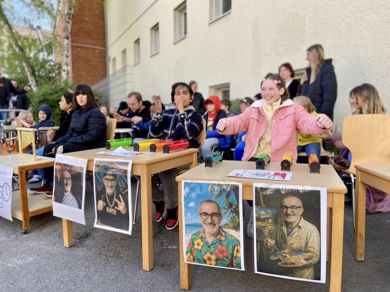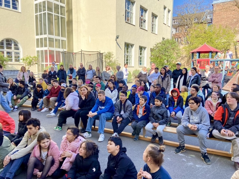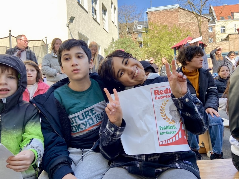 Auf dem Schulhof fand eine große Feier mit der ganzen Schulgemeinschaft statt. Viele Klassen haben für Herrn Goecke einen Auftritt vorbereitet und es gab sogar eine Sonderausgabe vom Redi-Express.