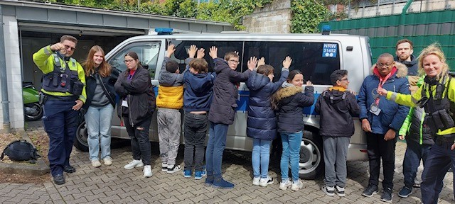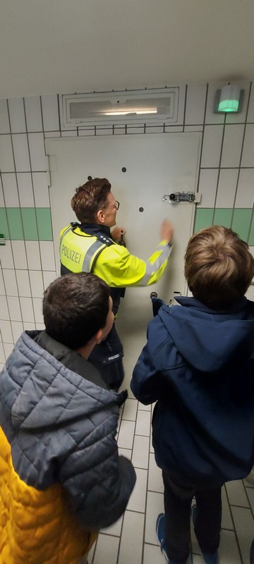 … und zwar war die Klasse zu Besuch in der Polizeiwache Köln-Sülz. Dort haben sie ganz viel über die Arbeit der Polizei erfahren. Die Schülerinnen und Schüler durften sich in einer Zelle einschließen lassen, mit einem Mannschaftswagen fahren und sogar die Sirene auslösen. Zum Abschluss wurden von allen noch die Fingerabdrücke genommen. Dieser Besuch war ein tolles Erlebnis!