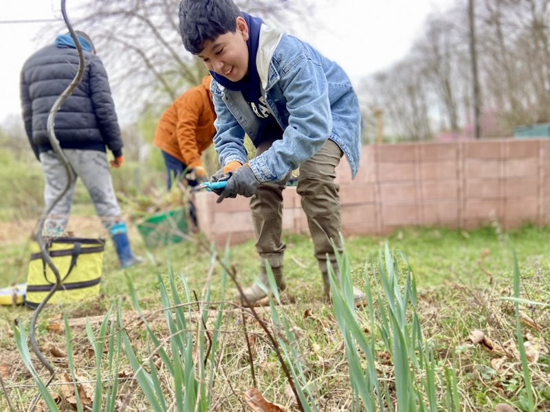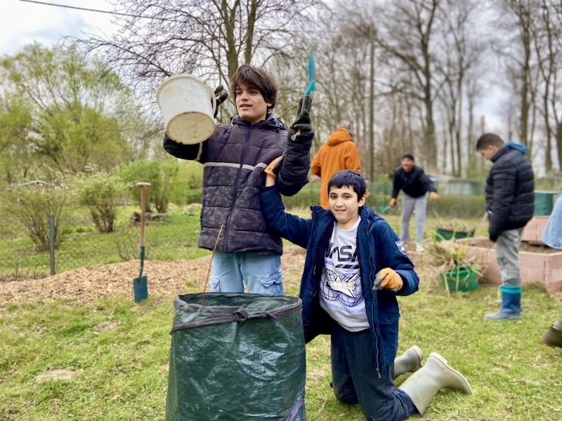 Zeit für uns, mal wieder im Schulgarten vorbeizuschauen. Dort wartet jede Menge Arbeit auf uns! Wir müssen die Beete vorbereiten, damit wir dort Pflanzen sähen können.