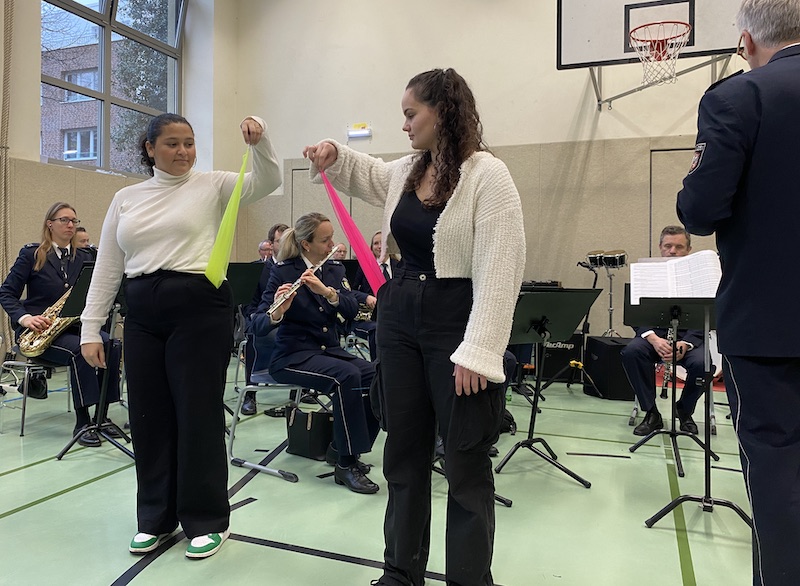 Wir bedanken uns ganz herzlich beim Landespolizeiorchester für das fantastische Konzert und bei Frau Riemenschneider, ihren Studentinnen und bei unserer Musiklehrerin Frau Traxel für die tolle Vorbereitung!