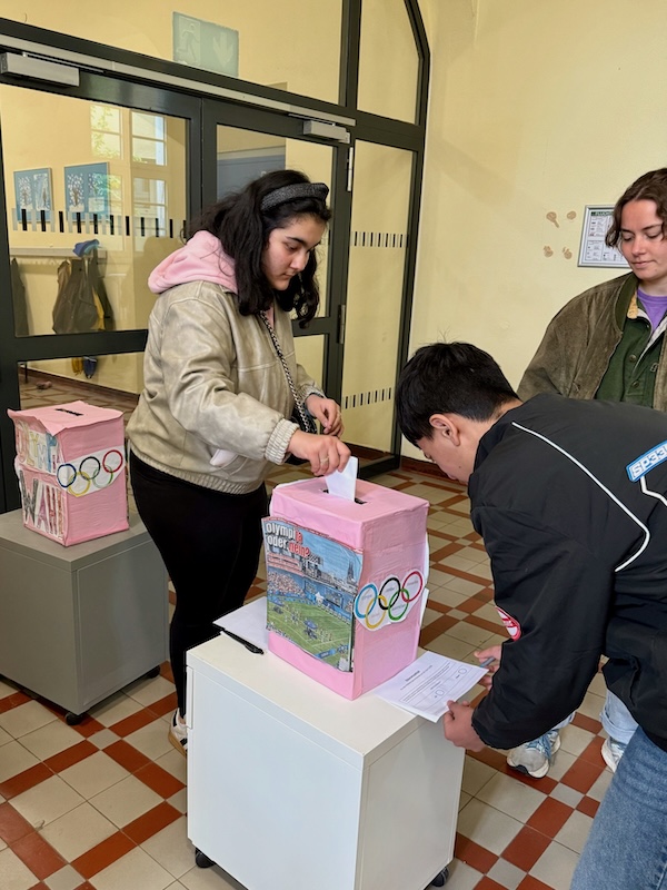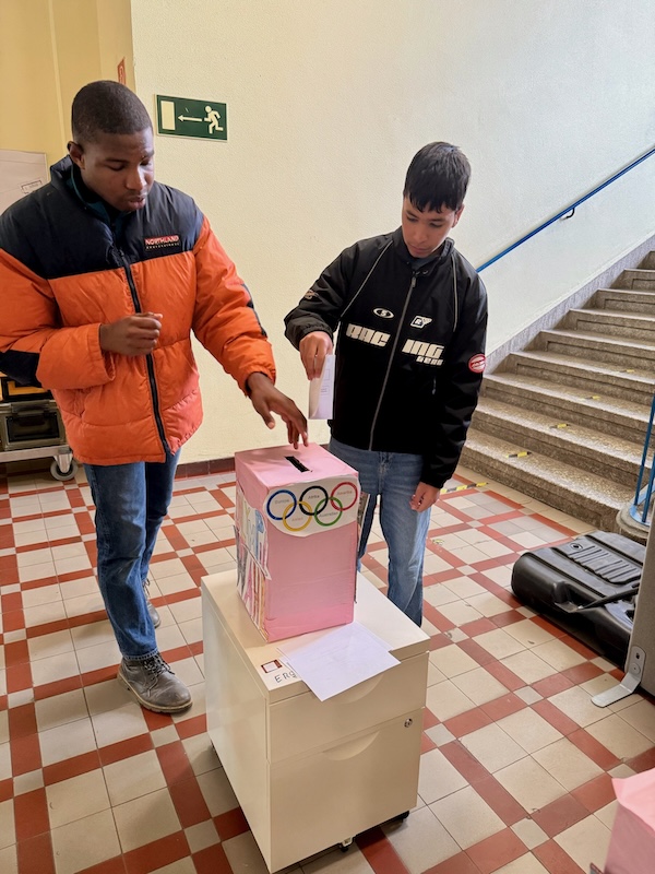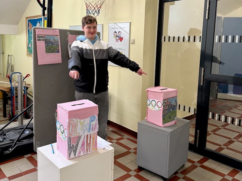 Wir machen Olympiawahl-Simulation. Alle, die wollen in der Schule, machen mit.